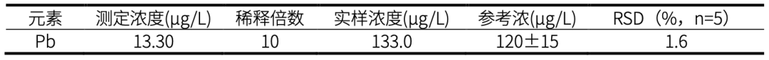 ICP-MS分析灵敏度可以轻松应对20~1000μg/L范围的Pb元素测定,分析过程适当引入稀释气体,可以提升样品分析的长期稳定性;