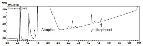 The analysis results of commercially available atropine spiked with 0.001 % p-nitrophenol trace impurity are shown below.