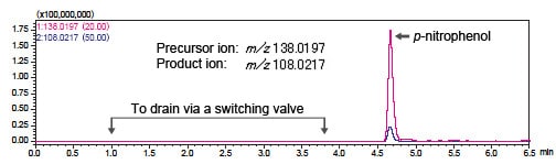 Fig. 1 shows a magnified view of the LC chromatogram. The arrow indicates the peak of the spiked p-nitrophenol.