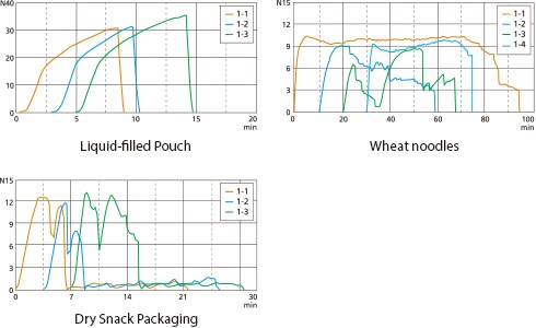 A wide range of materials, including aluminum and other metals and non-metallic materials such as paper and plastic, is used for packaging. According to their application, these materials must meet certain tensile, compression, and bending strength requirements, and if an adhesive is used, adhesive strength requirements. In the examples below, adhesive strength results for liquid-filled pouch, wheat noodle and dry snack package specimens are shown. In both instances, the adhesives meet the requirements of being strong enough to protect the contents, but weak enough so that the contents can easily be accessed by consumers.