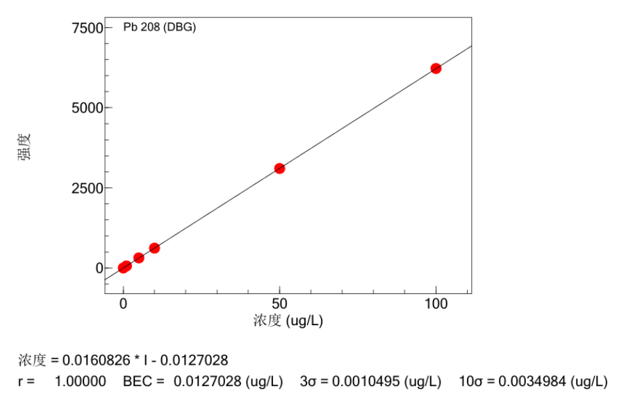 Pb元素ICP-MS分析标准曲线图